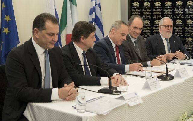 “Non esiste ancora una pipeline così lunga e così profonda”, esulta il ministro dell’energia sionista Juval Steinitz. L’Italia e la Grecia (ma soprattutto l’Italia) gli costruiranno il gasdotto che costerà 6 miliardi e sarà completato nel 2025, che pomperà gas e greggio del grande giacimento davanti a Gaza, che ovviamente i sionisti si sono accaparrati, rubandolo ai palestinesi, in condominio con Cipro (che ha perfettamente diritto, perché il giacimento è nelle sue acque territoriali). Il memorandum in questo senso è stato firmato martedì a Nicosia, fra l’ambasciatore italiano a Cipro, e i ministri dell’energie di Israele, Cipro, Grecia. Benediceva l’operazione il commissario europeo all’energia Miguel Arias Cañete. E’ probabile che sarà la UE a pagare il progetto, perché l’eurocrazia persegue instancabilmente la strategia di svincolare l’Europa dalla “dipendenza energetica da Mosca” (oltre a quella di fare regali allo Stato razziale mediterraneo). Il tubo, chiamato EastMed che approderà in Italia nel 2025, trasporterà fino a 16 miliardi di metri cubi di gas naturale all’anno, pari a circa il 5% del consumo annuale in Europa, secondo quanto riferito da EUObserver. Si è costituita allo scopo una joint venture fra Edison e la consorella greca Depa.![]()
