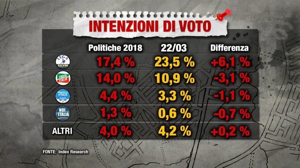 Anche l’elettorato di centro destra, quello che ha dato il 17% a Salvini, e pochi giorni dopo le elezioni, nelle intenzioni, già era pronto a dargli il 23,5. Mi congratulo, perché almeno questa parte dell’elettorato ha capito; ma ha capito “dopo”. Non poteva capire prima? Se la Lega di Salvini avesse quel 25% adesso il governo “populista” con i 5 Stelle – assolutamente necessario – sarebbe possibile.