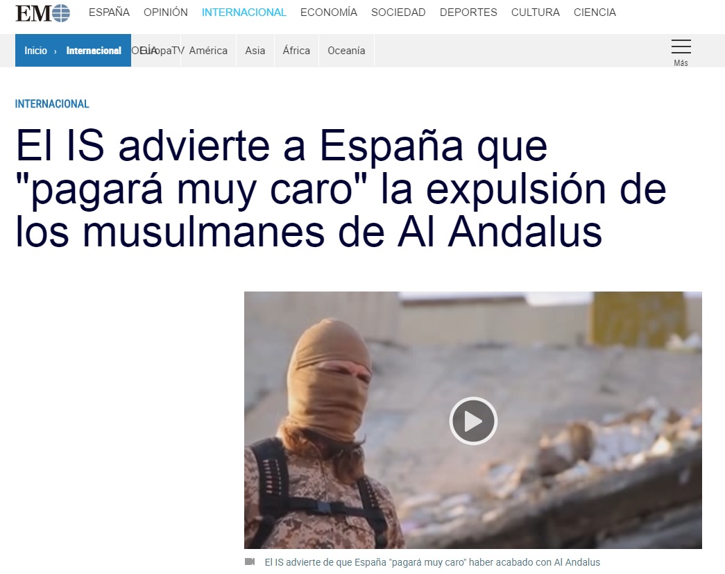El Mundo, il 31 gennaio 2016: “IS avverte che la Spagna pagherà molto cara l’espulsione dei musulmani da El Andalus”. Da cui sono stati cacciati nel 1492.