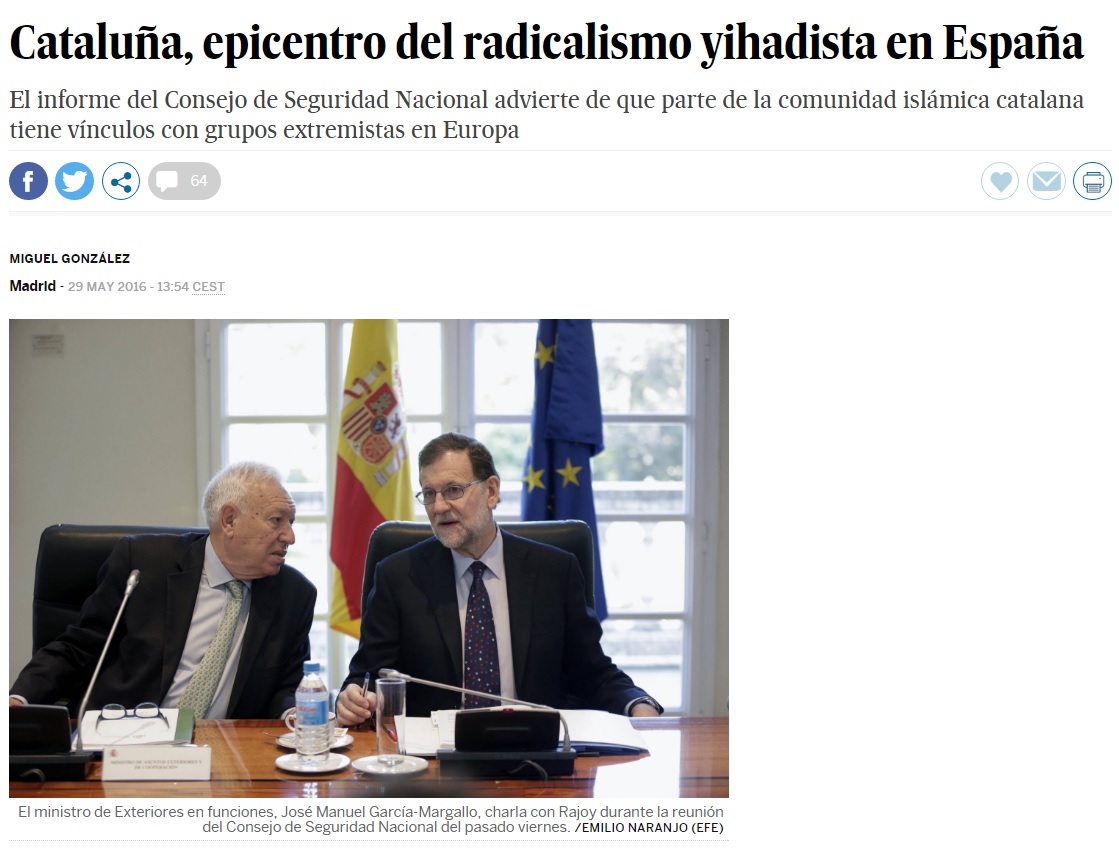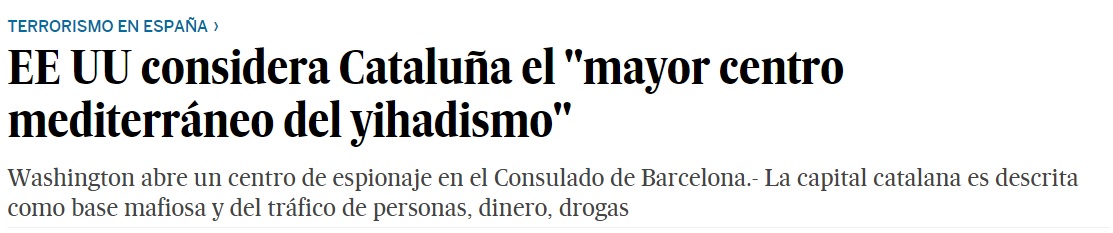 Ma già da anni El Pais (equivalente ideologico di Repubblica) informava i suoi lettori che “Gli Stati Uniti considerano la Catalogna il maggior centro mediterraneo del Jihadismo”;
