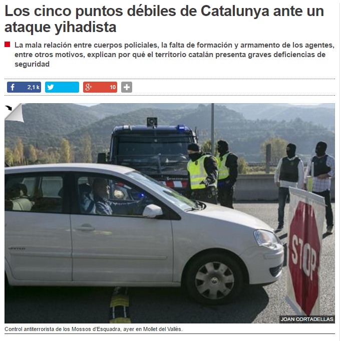 Naturalmente, i giornali contrari al secessionismo catalano notano “i punti deboli della Catalogna davanti a un attacco terrorista”, spiuegando che l’autonomia è molto carente sul piano dlla sicurezza: