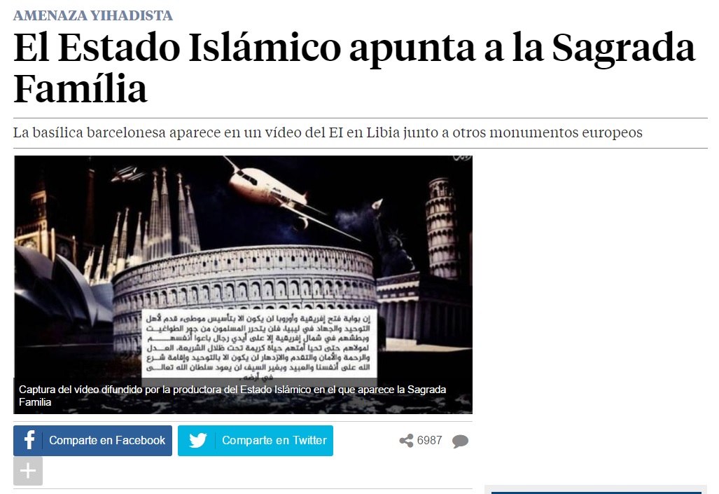 “Lo Stato Islamico punta alla Sagrada Familia”, informava La Vanguardia il 10 agosto 2016;
