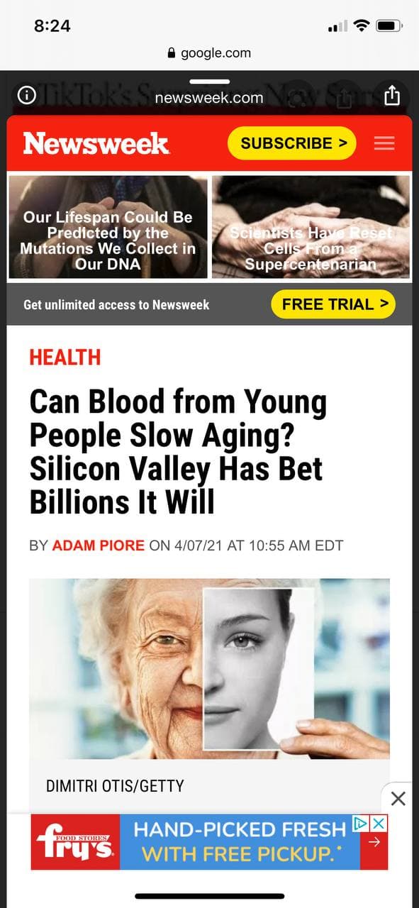 “Potete trovare dozzine di articoli scritti dal MSM (Vanity Fair incluso) che dettagliano come l’élite stia già usando “trasfusioni di sangue giovane” per mantenersi giovane. E invece di sottolineare quanto ciò sia orribile, ci condizionano a trovare tutto ciò bizzarro ed eccentrico” (Rossella Fidanza)![]()