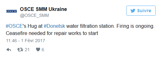 Anche gli osservatori OSCE, che dovrebbero controllare il cessate il fuoco di Minsk 2 e di solito danno la colpa ai separatisti, stavolta ammettono – implicitamente – che sono stati i nazistoidi di Kiev. Infatti è a loro che Alexander Hug, uno dei capo missione, ha chiesto di smettere di sparare sul twitter ufficiale dell’OSCE.