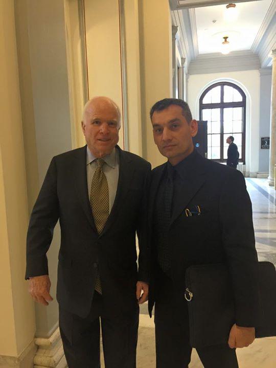 Tra gli organizzatori della protesta non dovuta è stato arrestato – ed espulso perché cittadino Usa, nonostante il nome – Rustam Tashbaev, descritto come “analista militare dello Stratagem Center for Political Analysis (un think-tank americano); aveva organizzato la manifestazione da posizioni di destra, in odio a Poroshenko che accusa di aver paralizzato le forze armate…fatto notevole, questo personaggio è apparso n una foto con il senatore McCain, esattamente come il califfo Al Baghdadi.