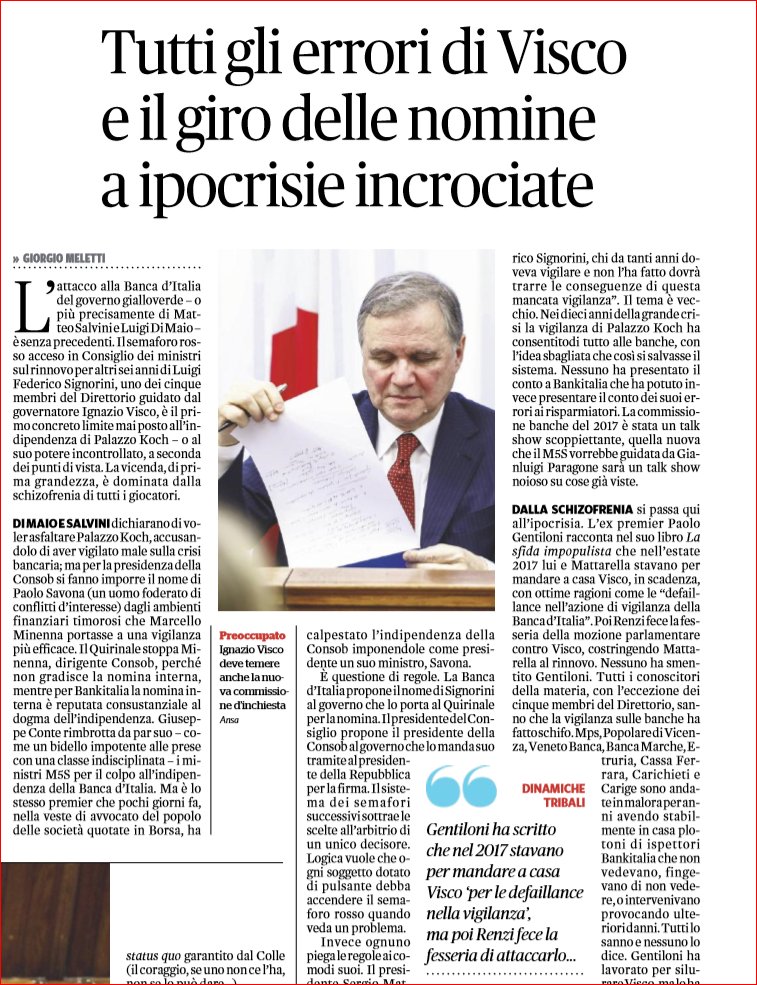 .. a seconda del “momento politico” la mano di #Bankitalia “… po’ esse ferro e po’ esse piuma: oggi è stata na piuma…” https://youtu.be/UzjeUZ02Tig La soluzione al “problema” è una sola…RESET DI SISTEMA…