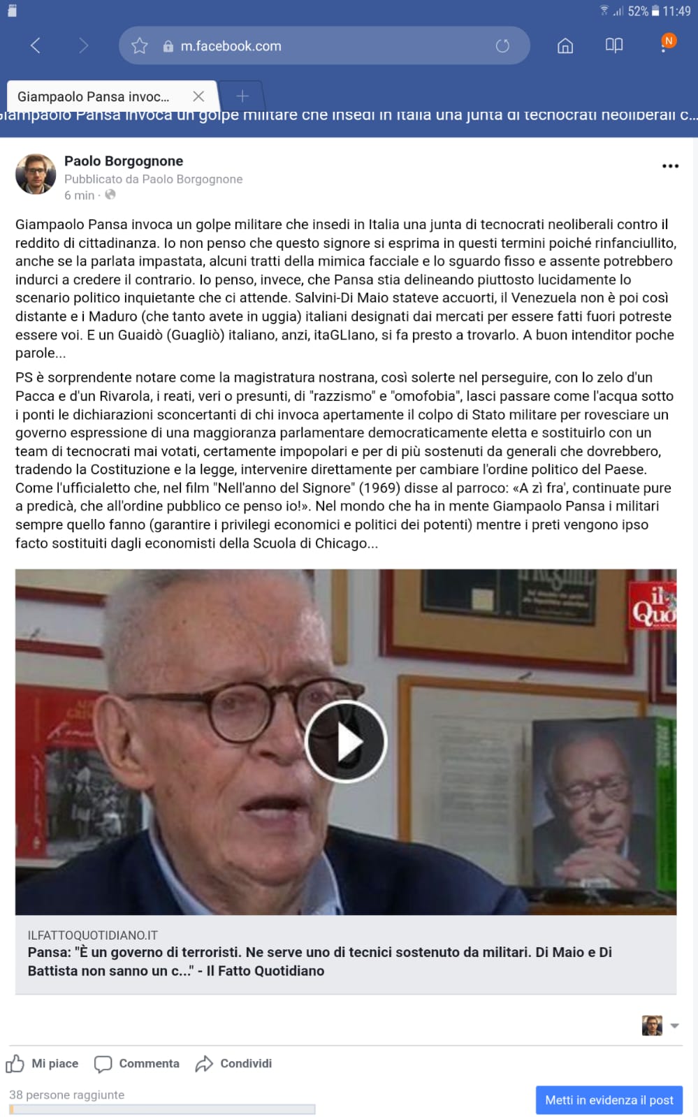 rasa del Foglio invoca il golpe. E mica è vecchio e rincoglionito:
