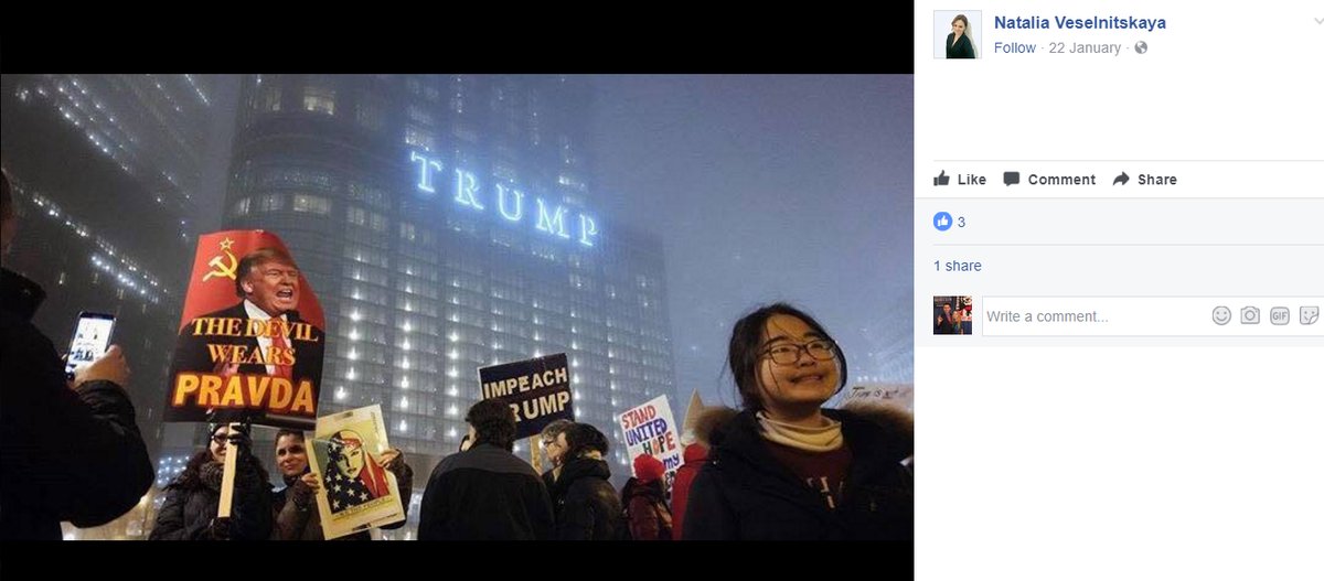 Altre foto la mostrano mentre partecipa a raduni anti-Trump, come questo sotto la Tower:![]()