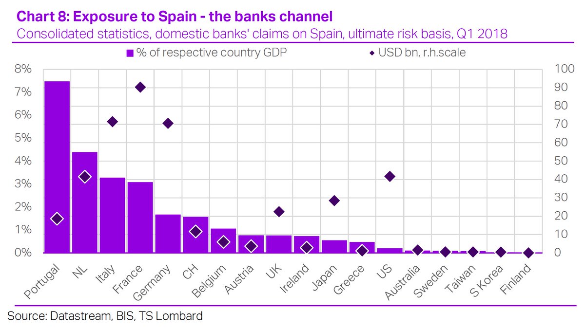 “Buongiorno dalla Germania le cui banche sono esposte verso la Spagna per almeno 70,5 miliardi di euro. Le banche spagnole sono massimamente esposte alla crisi in Argentina e in Turchia. Se il contagio si diffonde, si ripercuoterà molto gravemente nella UE a causa dei legami finanziari”.