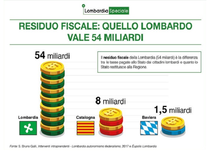 La richiesta di tale autonomia non può essere spacciata come un aumento delle quote del prelievo fiscale che rimarrebbero al Nord, dato che – ad autonomia conseguita – a Lombardia e Veneto perverrebbero le sole risorse derivanti dalle deleghe che lo Stato ad esse trasferirebbe, non un centesimo in più.