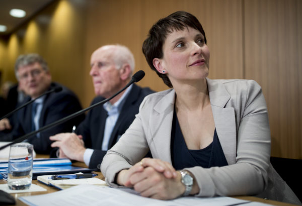 (Nella foto: Frauke Petry, leader del partito Alternative fur Deutschland. Dietro di lei Albrecht Glaser, altro esponente di AfD, membro della Unione Cristiano-Democratica , cattolico praticante, padre di quattro figli. Uno di quei cattolici che, dice Bergoglio, “fanno figli come conigli”. In fondo, l’economista Jorg Meuthen, co-presidente del partito, colpevole di aver detto che “l’Islam non appartiene alla Germania”).