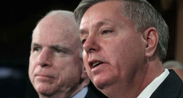 McCain, insieme al suo complice e subalterno di sempre senatore Lindsey Graham, hanno passato parte delle feste natalizie sapete dove? In Ucraina dell’Est, nella “zona di combattimento avanzato” di Shirokyn, dove hanno arringato le milizie neo-nazi e i pochi “regolari” che fanno provocazioni contro il Donbas separatista (e dopo tale incoraggiamento hanno portato sul fronte artiglierie pesanti in spregio a Minsk 2) e criticando esplicitamente la politica di riavvicinamento a Mosca di The Donald.