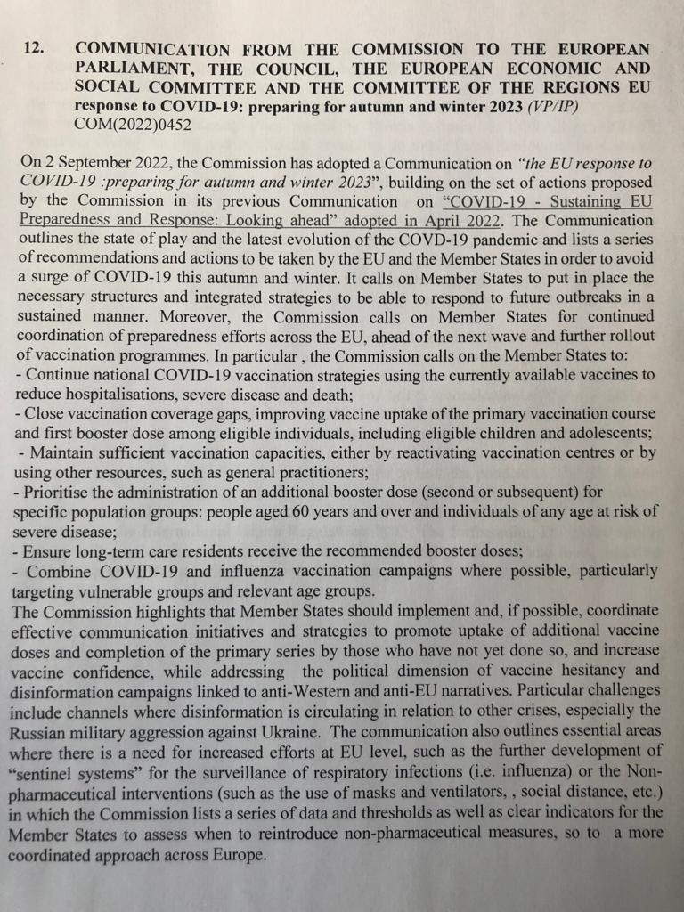 Il documento che pubblichiamo sopra è una comunicazione della Commissione Europea al Consiglio Europeo e al Parlamento Europeo. La commissione ENVI di questo Parlamento, responsabile per le questioni sanitarie, dovrebbe esaminarlo questa settimana.