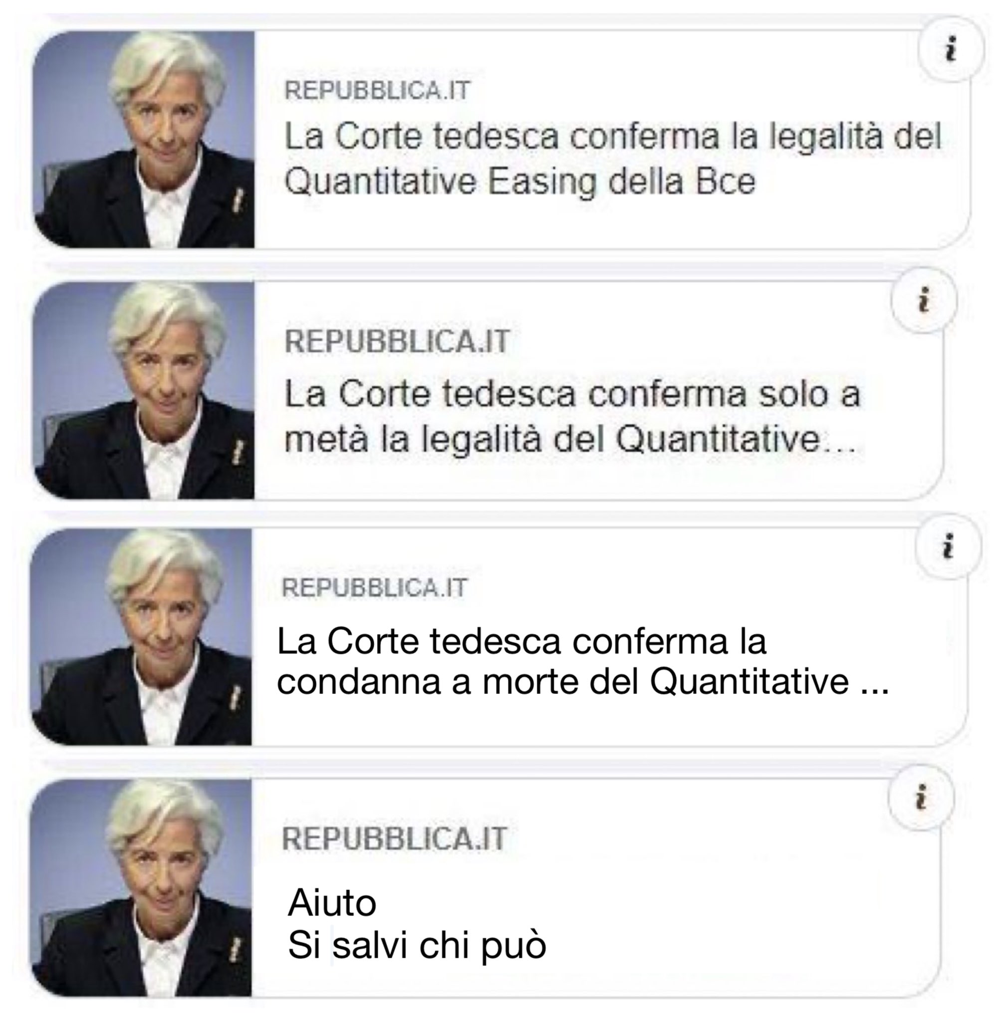 Una bomba nucleare sulla Ue. La Corte Costituzionale tedesca dichiara “ in parte incostituzionale” l’operato della BCE. I tedeschi di fatto si riprendono totalmente la loro sovranità monetaria. Non c’è bisogno di uscire dall’euro. Sono usciti loro. pic.twitter.com/Ea9PYKSMpo