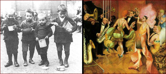 Come dal 1990 i capitali globali sono accorsi verso le economie emergenti, le “tigri asiatiche”, la Cina, il Brasile, l’Est-Europa, così nel 1924 il paese “emergente” per eccellenza fu la Germania: emergente dai disastri della guerra con le sue industrie intatte (la Grande Guerra non bombardò le città), la sua impareggiabile manodopera (a basso costo), la sua tecnologia, le sue classi tecniche produttive. I salari erano bassi, e i bassi salari stimolano gli investimenti industriali (l’abbiamo visto succedere anche in Cina, o in Romania..). Come accade nel capitalismo globale d’oggi, anche allora la Germania dava agli “investitori esteri” le garanzie del libero mercato e della “democrazia”, l’ambiente adatto al business. Infatti era stato licenziato il Kaiser, sradicato il prussianesimo, a Berlino folleggiava, radical-chic e arricchita dai profittatori di guerra, la Repubblica di Weimar.