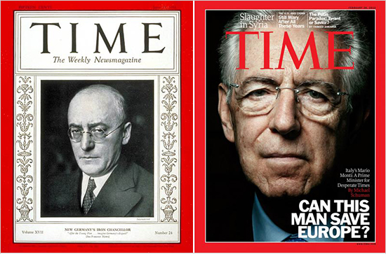 Era allora cancelliere Heinrich Bruening; laureato dalla London School of Economics, dunque allievo-modello del capitalismo liberista, spese miliardi di marchi (dei contribuenti) per “salvare le banche”. Poi accordò amplissimi sussidi alle imprese in difficoltà.
