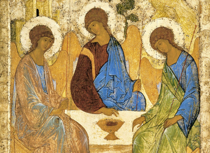 Non è dunque che il pittore di icone non sappia dipingere in stile naturalistico-verista; non vuole. Dal resto, con che faccia dal vero ritrarre i tre uomini che sedettero all’ombra delle querce di Mamre e che Abramo ristorò, ed erano la Trinità?