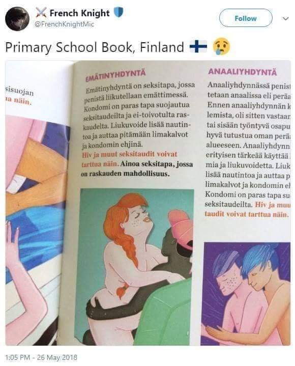 Come risposta, un altro lettore ha postato due pagine di un libro di testo PER LE ELEMENTARI in Finlandia: