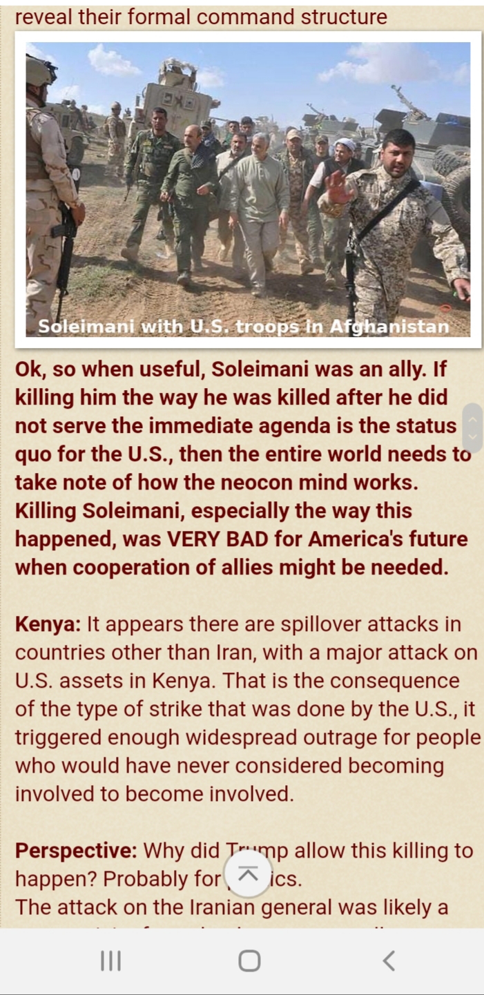 Il giornale ebraico citava il giornale kuwaitiano Al-Jarida, spesso viene utilizzato da Israele come “mezzo per trasmettere messaggi a paesi del Medio Oriente” arabi. Al-Jarida diceva infatti che aveva ricevuto da una sua fonte a Gerusalemme che “è stato aggiunto un accordo, fra americani e israeliani”, sul fatto che Soleimani è una “minaccia agli interessi dei due paesi nella regione”.