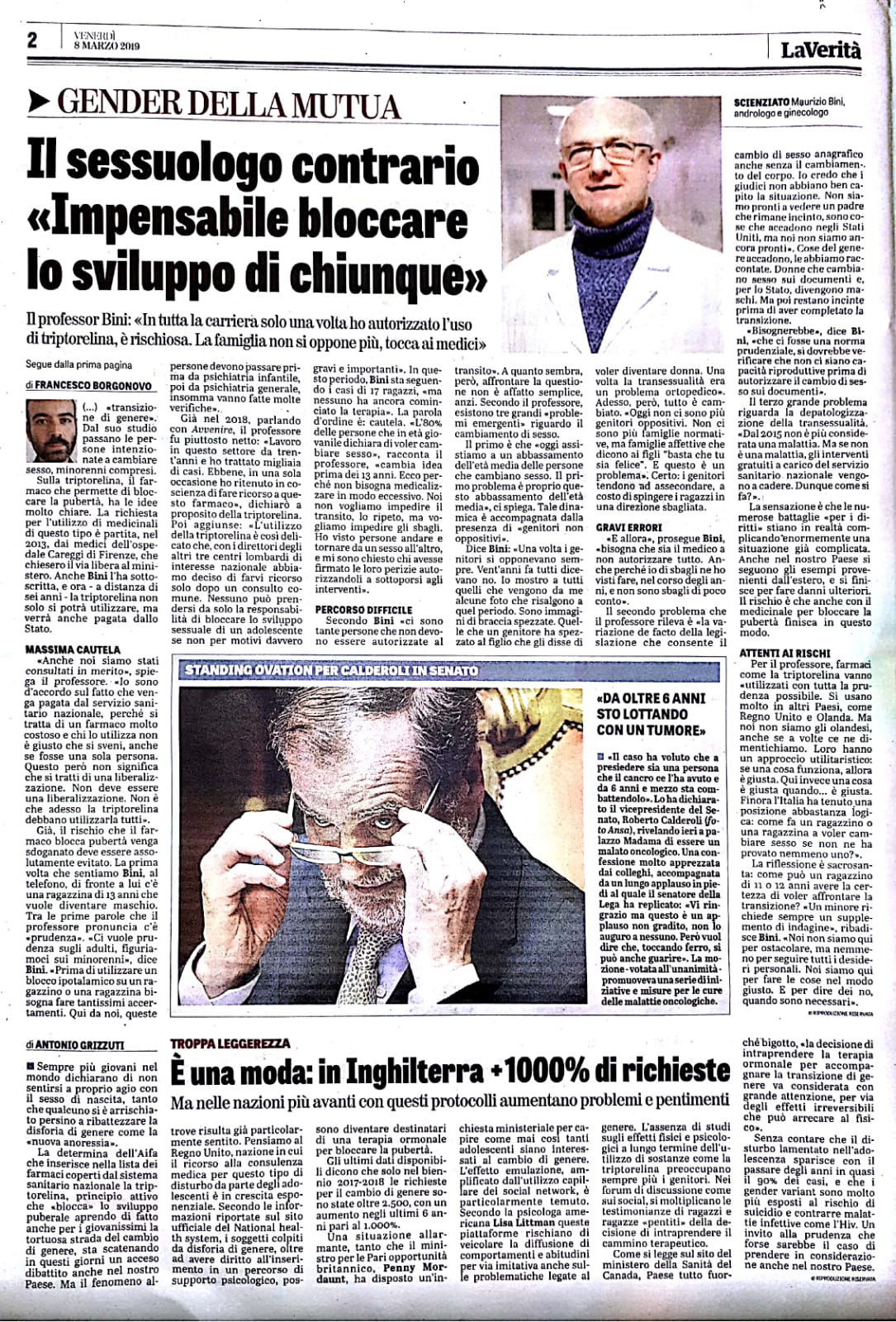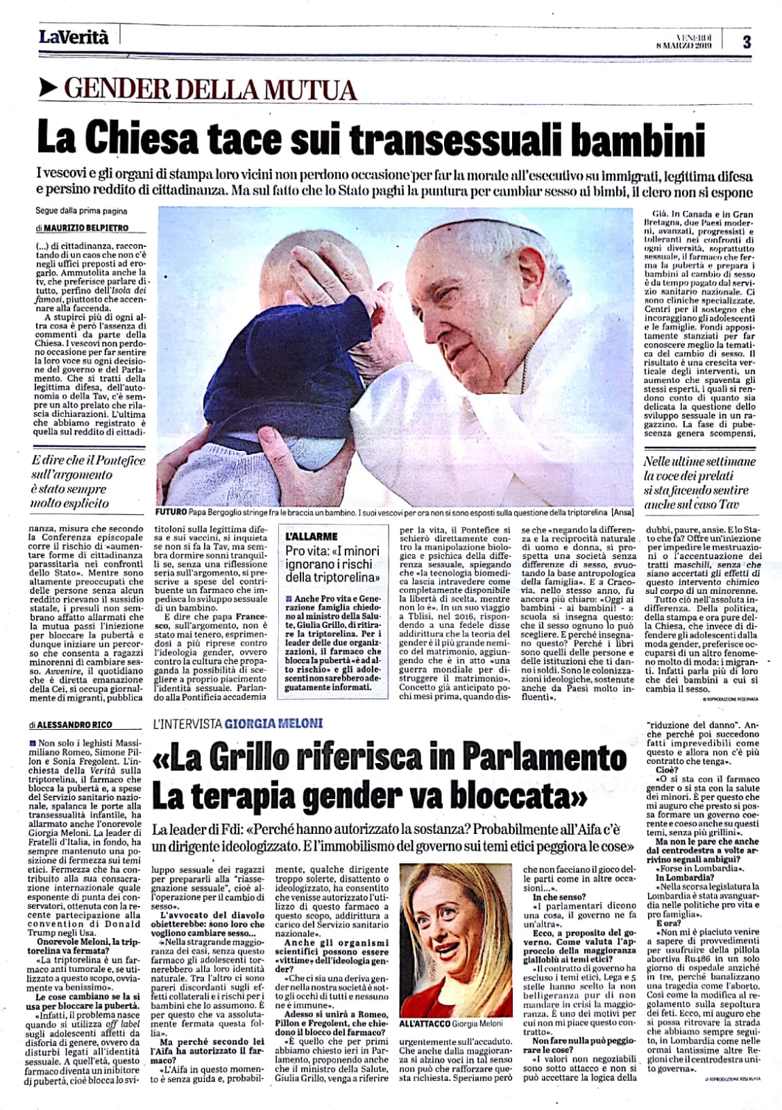 Ma questo è il meno: La Verità di Belpietro – aveva appena titolato che “la Chiesa tace” su questo farmaco di preparazione ai trans.