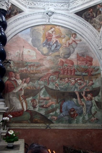 La cosa più assurda è che addirittura la Santa Vergine bombarda, aiutata da un angioletto, la povera flotta turca con delle bombe fatte scagliare da una sadica figura angelica, che sorride compiaciuto nel portare a termine questo abominio.