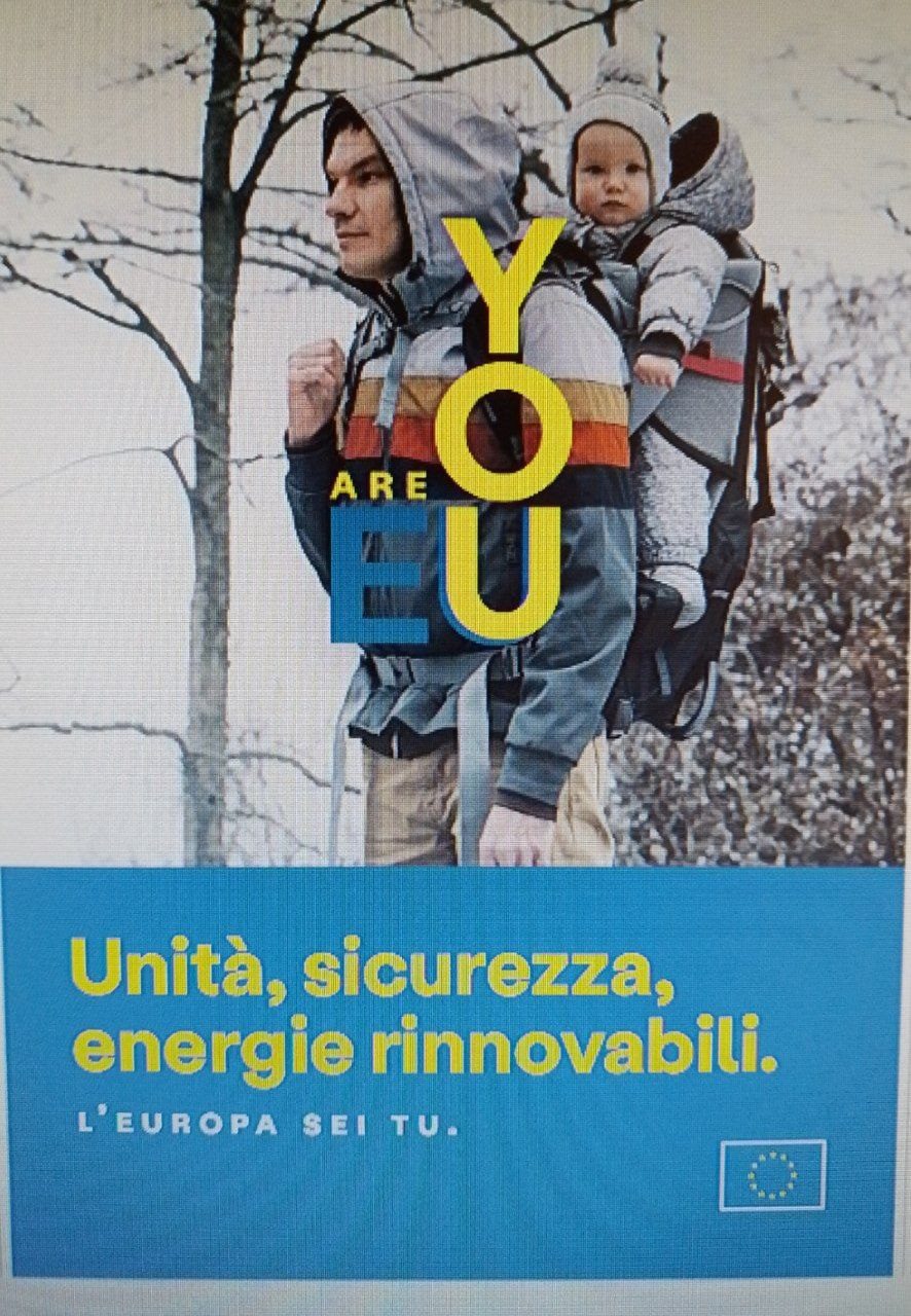 Da qualche giorno vediamo, attaccati alle pensiline presso le fermate dei mezzi pubblici, un’altra stucchevole serie di “pubblicità progresso”, sotto forma di manifesti dell’Unione Europea. Tutti all’insegna della “solidarietà”, dei “diritti”, della “diversità”, della “protezione” e soprattutto del nuovo verbo green. Il messaggio comune della campagna contiene un vero e proprio insulto all’intelligenza: l’Europa sei tu. Ci prendono per il naso e dobbiamo abbozzare, anzi credere, obbedire, combattere. A sottolineare il carattere multiculturale del paradiso con sede a Bruxelles, c’è anche una traduzione a caratteri cubitali: are you. L’Europa sono io che leggo, intimano; viene voglia di praticare l’eutanasia o rivolgersi a uno psichiatria, uno bravo, data la gravità del caso.