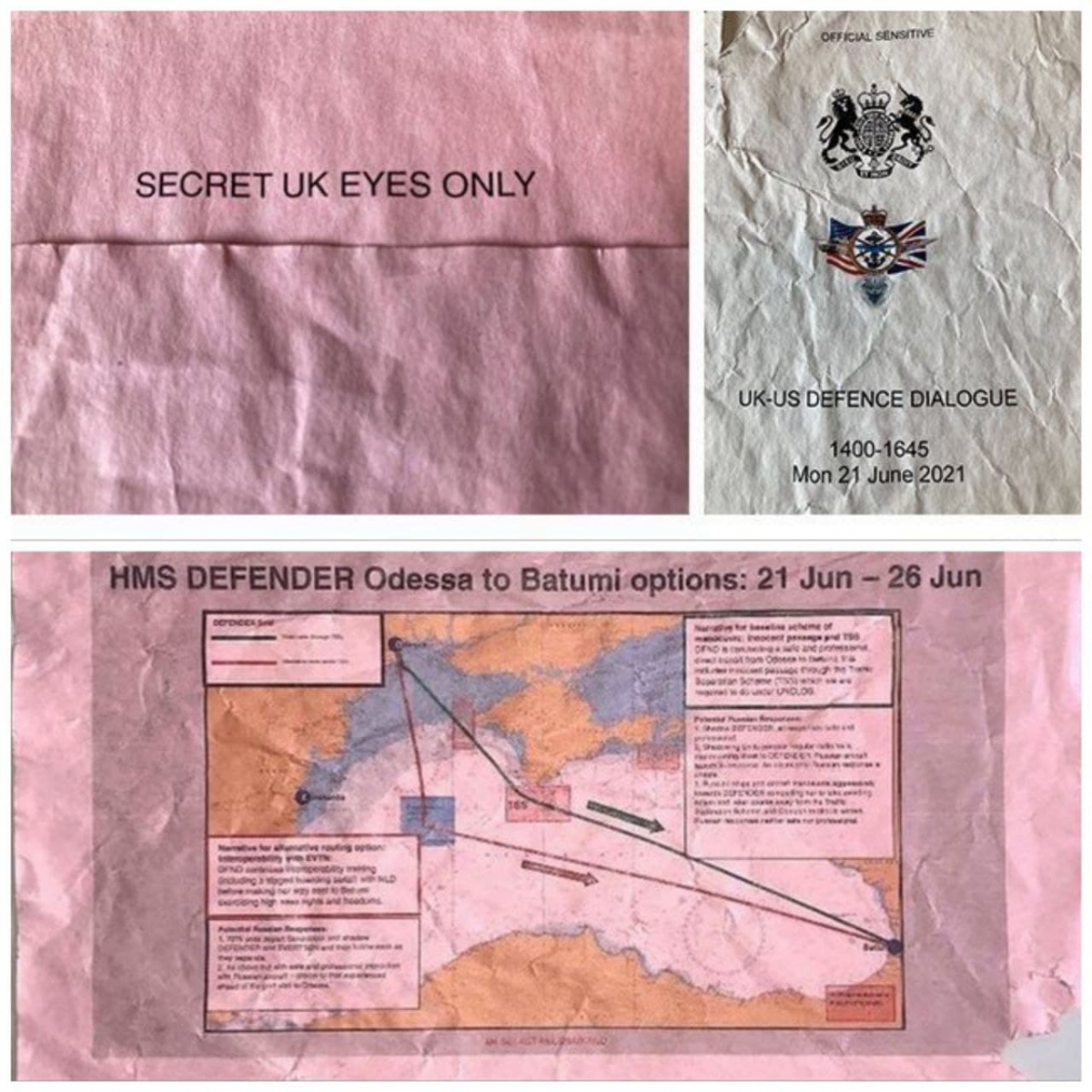 In altre parole: “Documenti sensibili della difesa del Regno Unito contenenti dettagli sull’HMS Defender e sull’esercito britannico sono stati trovati da un passante – a una FERMATA DELL’BUS! Il Ministero della Difesa ha confermato che un membro dello staff aveva segnalato la perdita, nel frattempo il pendolare ha consegnato le informazioni classificate alla BBC, che si dice sia un o spesso dossier di 50 pagine.