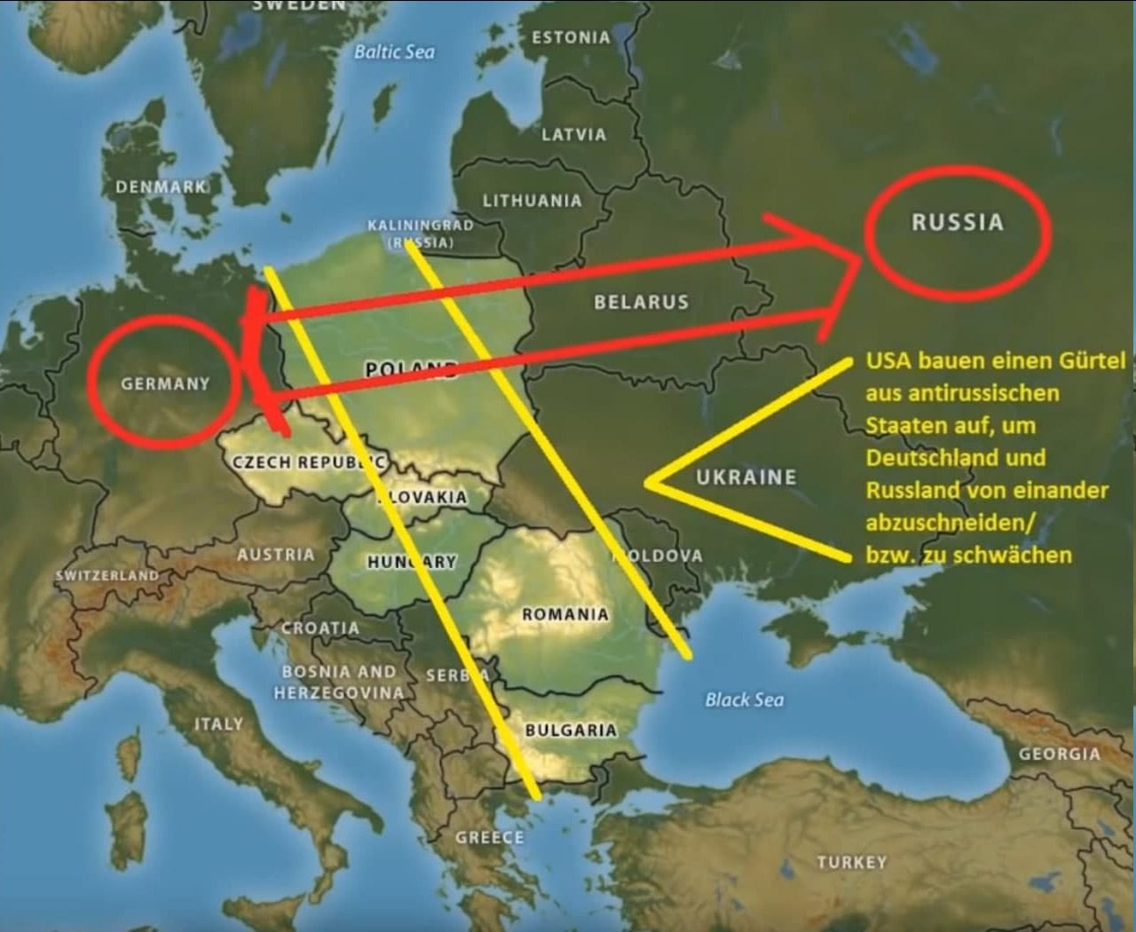 La strategia degli Stati Uniti è quella di costruire una cintura anti-russa attraverso l’Intermarium (paesi dalla Polonia alla Bulgaria), separando Russia e Germania l’una dall’altra. L‘Ucraina è geopoliticamente cruciale per questo: