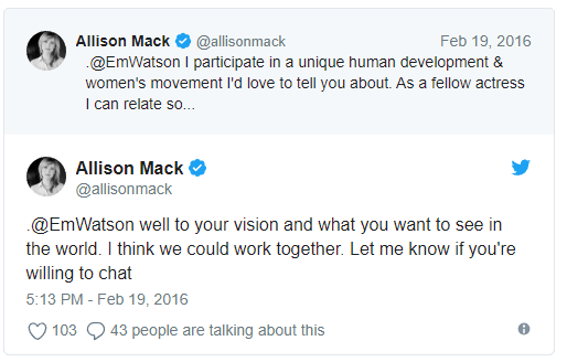 “Tra le vittime che Allison Mack ha tentato di reclutare c’è anche l’attrice Emma Watson, diventa famosa per l’interpretazione in “Harry Potter”. Nei tweet scritti all’attrice nel 2016 e riportati alla luce da Business Insider, Mack ha contattato Watson, cercando di coinvolgerla in un “incredibile movimento femminile”.