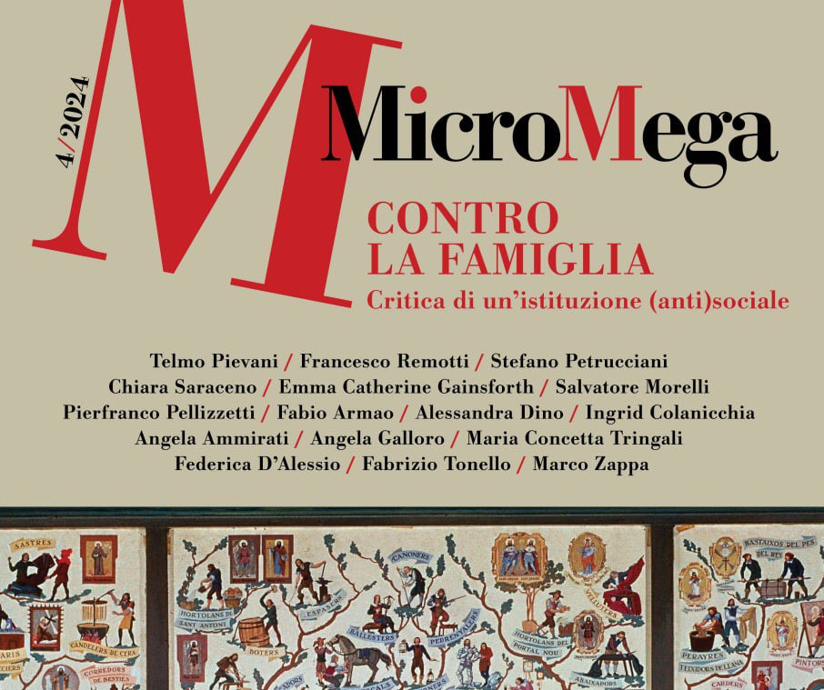 Qui apertamente mostrato sulla copertina della rivista ”colta” piddina Micromega. All’apice della denatalità promossa dalla plutocrazia, la derisione continua della “famiglia tradizionale” e della sparizione pura e semplice delle unità familiari, chi sentono bisogno di attaccare i sedicenti marxisti, come pericolosa istituzione anti-sociale?
