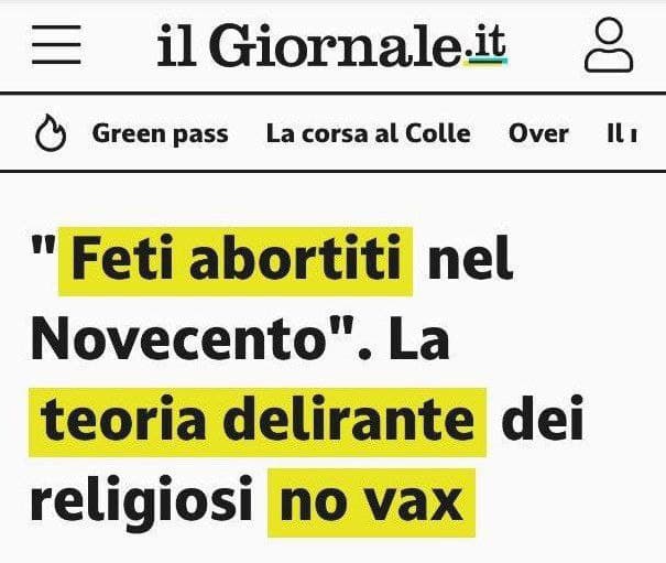 Il Giornale pubblica un articolo (https://www.ilgiornale.it/news/cronache/feti-abortiti-nel-novecento-teoria-delirante-dei-religiosi-1988031.html) sulle “teorie deliranti dei religiosi no vax”.