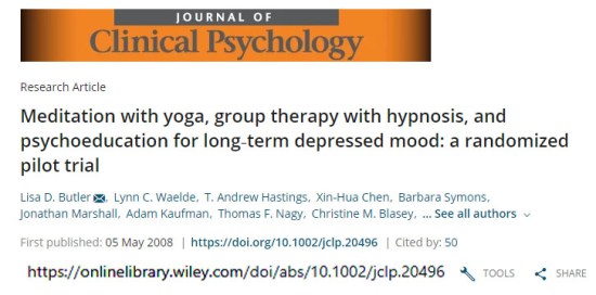 Lo studio clinico in cui la Blasey-Ford (con altri colleghi) spiega la tecnica di ipnosi ed auto-ipnosi per costruire falsi ricordi, è stata pubblicata dal Journal of Clinical PSychology il 5 maggio 2008, e si intitola: ‘Meditation with yoga, group therapy with hypnosis, and psychoeducation for long‐term depressed mood: a randomized pilot trial‘.