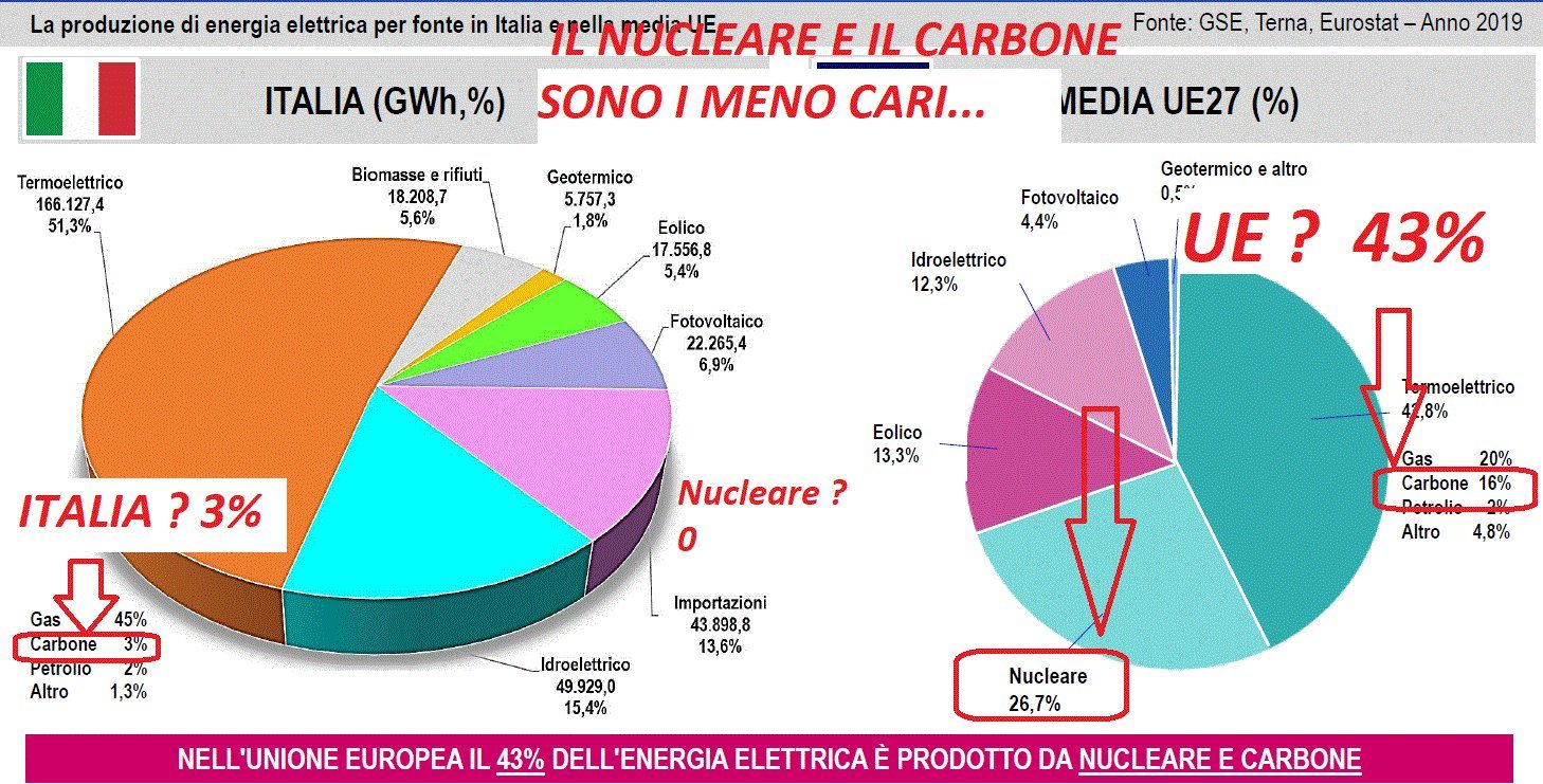 sostenere che l’eolico e il solare costano meno del carbone e gas è come sostenere che i Lockdown servono e bisognava iniettarsi la pozione di Pfizer è statisticamente, tecnicamente falso TUTTO IL MONDO, PERSINO LA UE! USANO CARBONE E NUCLEARE tutti meno noi