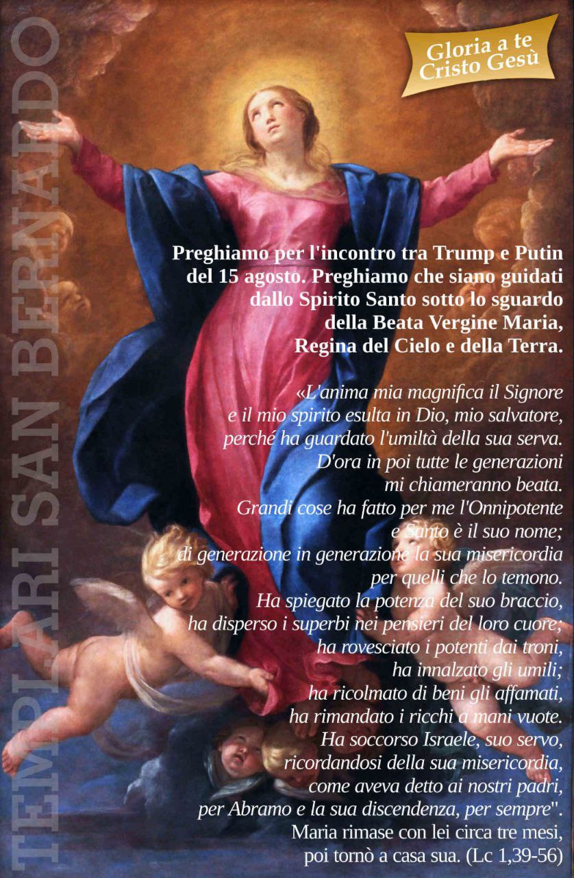 Celebrare l’Assunta significa celebrare il fatto che la nostra vita ha un inizio ed una fine, ma soprattutto un fine, ovvero l’incontro finale con Dio. Non siamo frutti del caso, non viviamo per un fortuito incontro di cellule, ma per un progetto d’amore. Ciò che siamo, ciò che proviamo, ciò che sogniamo è importante per Dio, che non ci vuole perdere per strada, non ci vuole smarrire, perché neppure nella morte ci lascia soli. E la Sua Presenza ha il volto dolce e sorridente di una donna, che prega per noi ora come lo farà nell’ora della nostra morte. Affidiamoci a Lei quindi, lasciamoci prendere in braccio da Maria che è nostra Madre, e impariamo da Lei a fare tesoro di ogni Parola che esce dalla bocca di Suo Figlio Gesù, a meditare nel nostro cuore tutto ciò che viviamo, tutto ciò che Suo Figlio ci dice, perché Lei per noi è “di speranza fontana vivace”, come scrisse il padre Dante.
