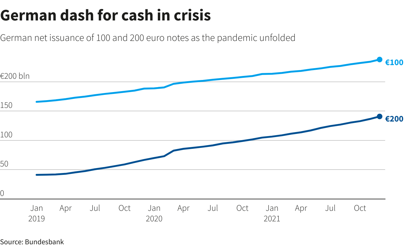 accesso al contante è una preoccupazione particolare per i tedeschi, che apprezzano la sicurezza e l’anonimato che offre e che tendono a usarlo più degli altri europei, con alcuni marchi tedeschi che ancora accumulano sostituiti da euro più di due decenni fa.