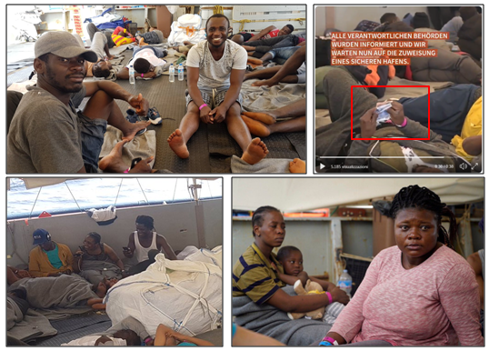 La fake news sulle sofferenze subite dai migranti in Libia è proprio immortalata dalle fotografie scattate a bordo della Sea Watch 3: persone ben pasciute, tagli di capelli che sembrano freschi di parrucchiere, barbette curate, gli immancabili smartphone e cuffiette, e pure gli euro in tasca.