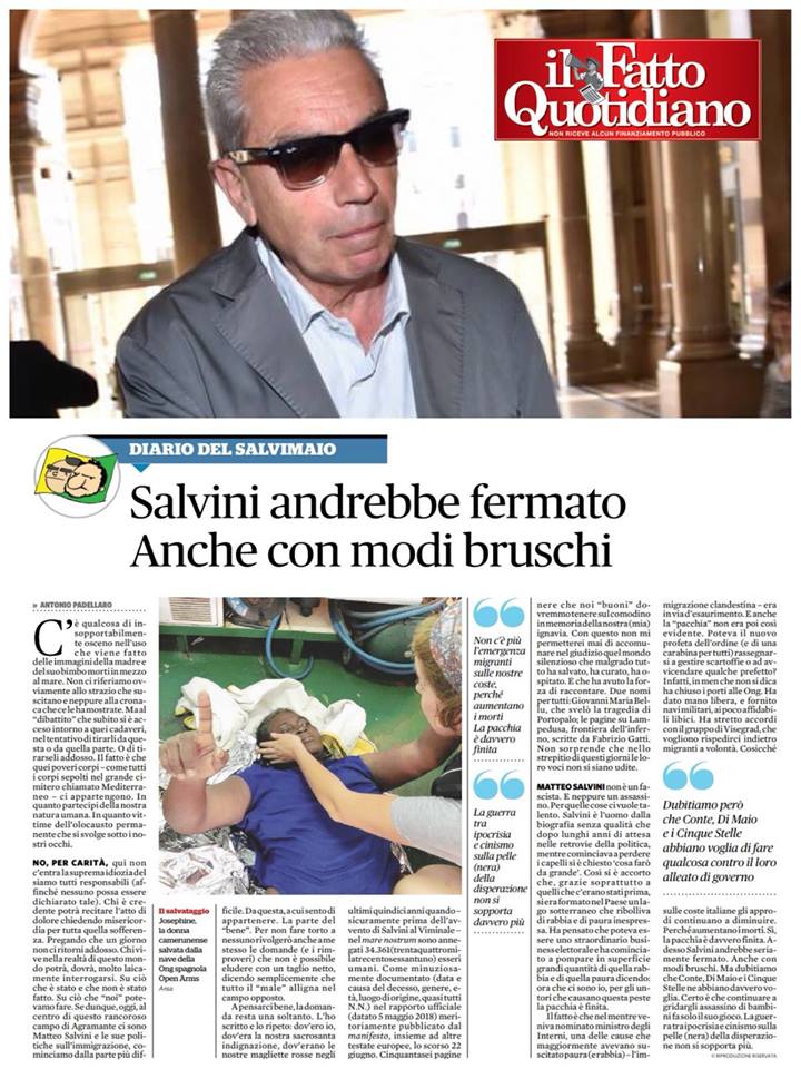 Padellaro:”Fermiamo Salvini anche con modi bruschi”.