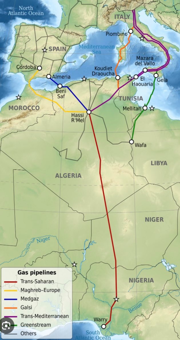 Nel frattempo, la strategia basata sui desideri e non sulle analisi, prevede la sostituzione del gas della Russia con quello dell’Algeria e della Nigeria: qui non infierisco, perché mi risulta difficile comprendere come una persona possa pensare di sostituire un percorso tra Russia e EU via Bielorussia, via Ucraina e via mare (NordStream), terre che bene o male, sono stabili ai fini della sicurezza dei gasdotti (neppure #Zelensky ha fatto saltare in aria il tubo che pass per l’Ucraina) con migliaia di Km attraverso il deserto del #Sahara, passando da #Nigeria, #Niger #Algeria #Tunisia, tutti uno contro l’altro.