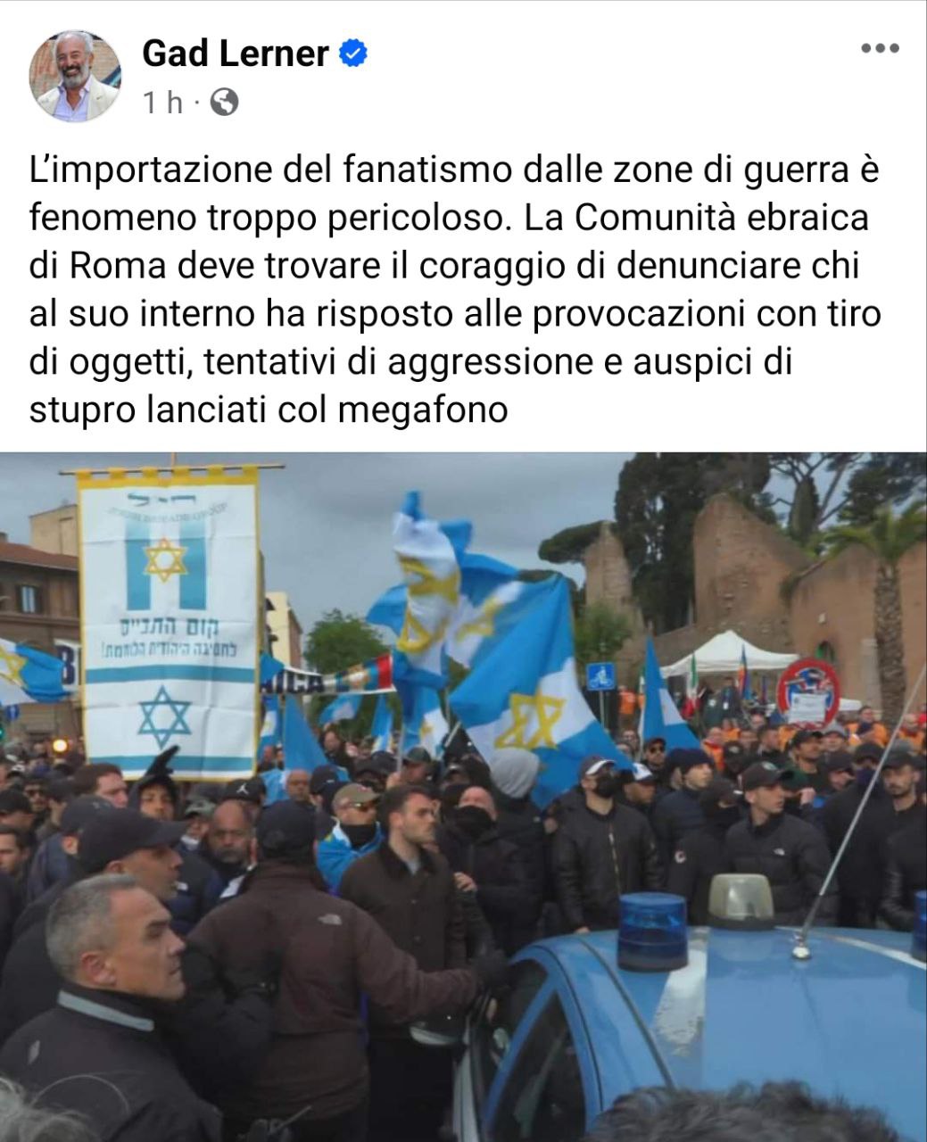A differenza del pestaggio di novembre 2012, le vittime non sono riuscite a filmare l’aggressione e, in assenza di immagini, le uniche prove sono i loro ricordi. Infatti per il numero uno della comunità ebraica sono “episodi tutti da verificare, sarà stata una rissa da sabato sera”. Poi Pacifici si lancia in un paragone quanto mai azzardato: “Se qualcuno va a togliere una bandiera sotto Casa Pound, secondo lei cosa succede? La provocazione viene fatta passare indenne?”. Come se la sede dei fascisti del terzo millennio e le vie di un rione di Roma fossero la stessa cosa, luoghi in cui all’occorrenza si può anche fare valere la legge del taglione.