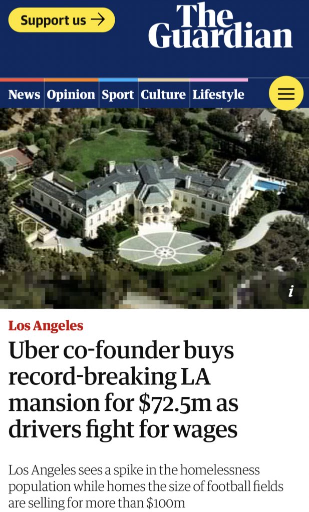 E posta due titoli: Il fondatore di Uber – quello che ha inventato la app che consente ai privati di usare la loro auto come taxi – si compra a Los Angeles una magione da 72,5 milioni