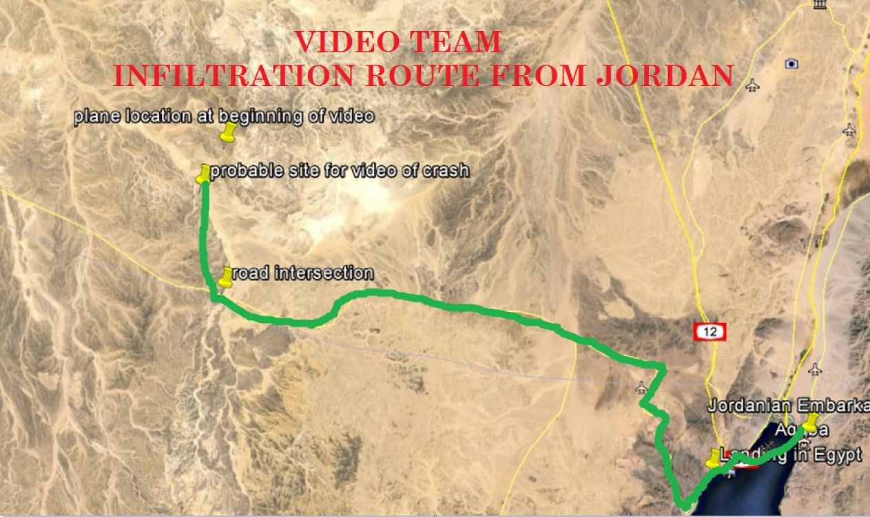 Arretrando rispetto al punto d’impatto, i ricercatori di Veterans Today sono arrivati “alla sola località raggiungibile a circa 24 miglia (dai resti dell’aereo) : uno uadi abbandonato che ha collegamenti diretti con la superstrada usata come rotta di infiltrazione in Giordania, rotte usate costantemente dai gruppi di operazioni speciali che lavorano coi terroristi del Sinai”. Servizi israeliani e sauditi.