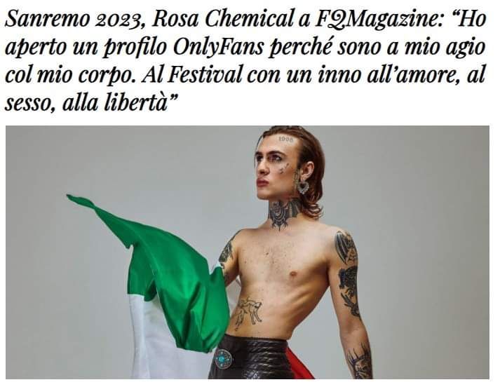 Quanto all’Italia neo-primitiva, decidendo di superare ogni limite nelll’aberrante farà esibire a Sanremo un difensore dei Nostri Valori per i quali Zelenski combatte con tutte le nostre armi: ![]()