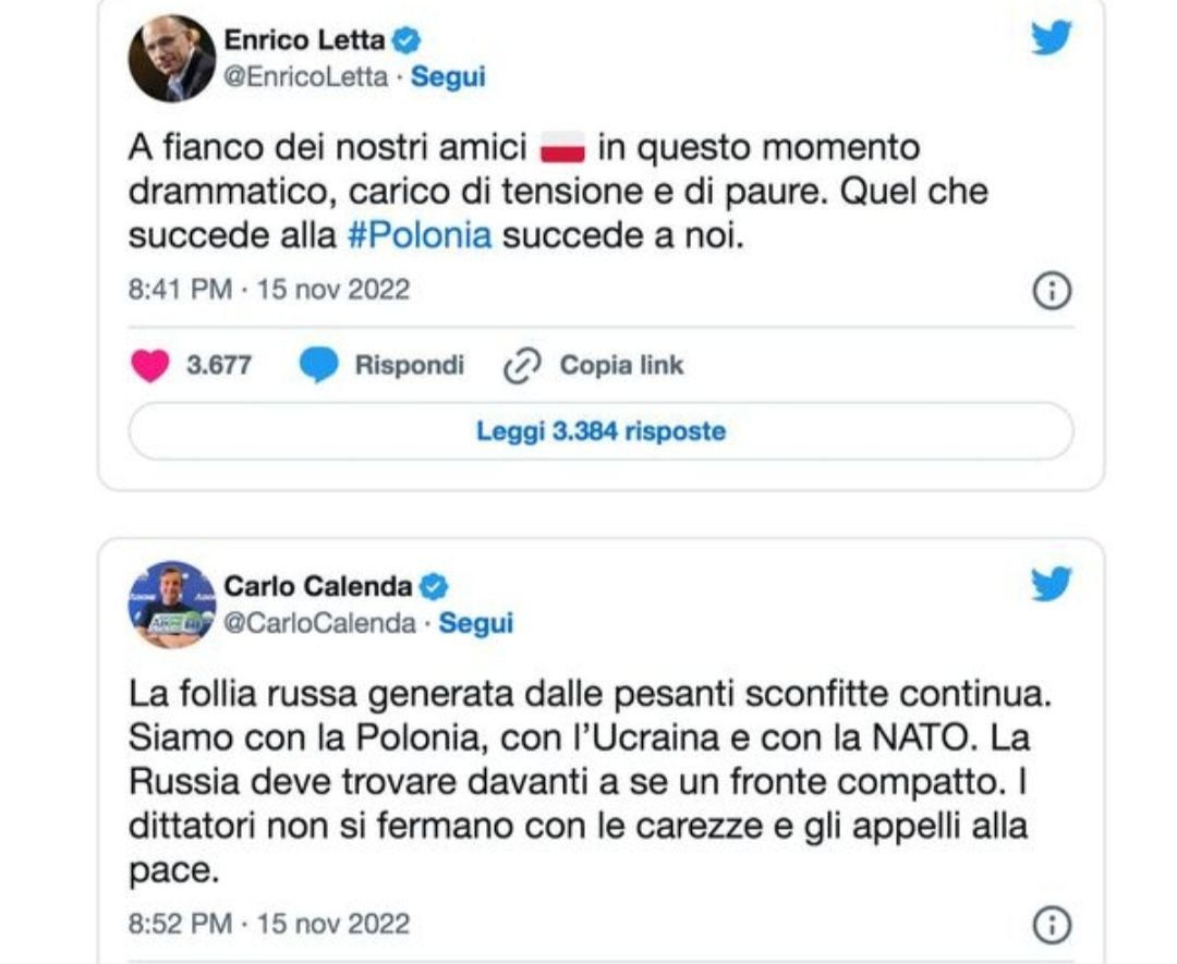 Dove il pentagono mostra prudenza, dove i polacchi precisano che il missile caduto probabilmente non è russo, che forse si tratta di un frammento di un missile ucraino antiaereo, i pazzi gridano all’attacco a un paese Nato. Alzano toni come ubriaconi da bar.