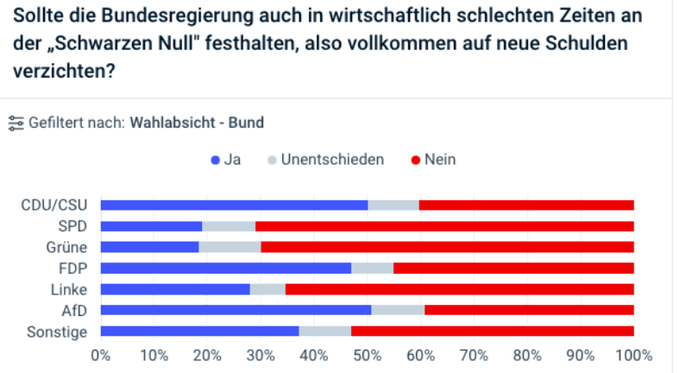 In un sondaggio in Germania la maggioranza di elettori della CDU, Liberali e anche AfD risponde che il governo deve mantenere il pareggio di bilancio anche in recessione”.
