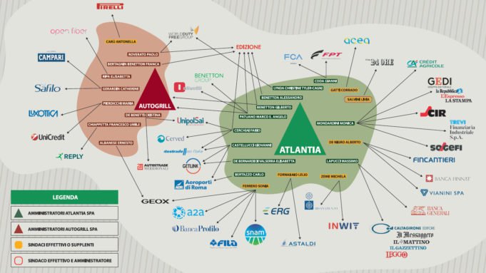 Più illuminante degli indizi “tecnici” di esplosione può esservi l’organigramma pubblicato da Beppe Grillo su Atlantia e i suoi amici.