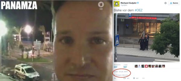 La sera del 14 luglio, Richard Gutjahr è a Nizza, sulla promenade, e riprende in video la scena del camion che fa’ strage. Il 22 luglio, Richard Gutjahr si … Leggi tutto Lo stesso ‘giornalista’ che ha fatto il video a Nizza, era anche a Monaco. A filmare davanti al McDo