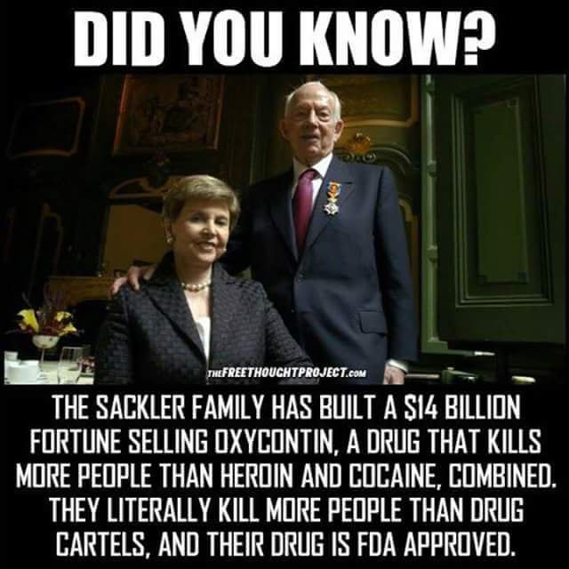 I Sackler, 13 miliardi di dollari di capitale (più dei Rockefeller) sono noti come mecenati di artisti d’avanguardia, hanno aperto musei dell’Arte Femminista e simili. Si considerano e sono considerati filantropi e imprenditori sociali.