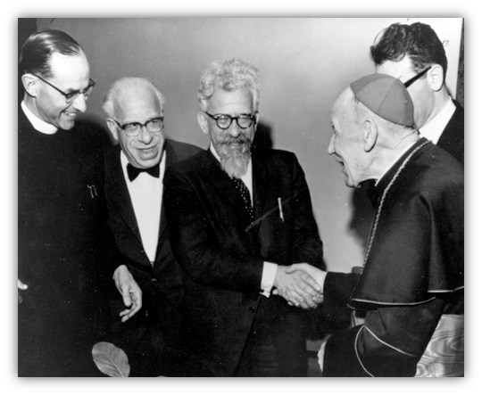 (MB – Nulla di segreto. La partecipazione del B’nai B’rith al Concilio è documentata e confermata dal suo stesso esponente Jules Isaac, che chiese a Giovanni XIII di mettere fine all’ “insegnamento del disprezzo”. Di fatto, il documento Nostra Aetate fu stilato dal B’Nai B’rith ed approvato dai padri conciliari, forse all’oscuro della sua origine. SI veda Emmanuel Ratier, “Misteri e segreti del B’Nai B’rith, Centro librario Sodalitium. Don Curzio Nitoglia ha anch’egli confermato e approfondito l’argomento (http://www.doncurzionitoglia.com/da_cabala_a_postmodernismo.pdf) – Quanto all’appartenenza di Roncalli e Montini alla Massoneria, non ce ne è prova. Ma in fondo, nemmeno importa: il modernismo “è” identico alla Massoneria nei mezzi (il metodo del segreto, sotterfugio, organizzazione clandestina: clandestinum foedus) e nei fini: lo svuotamento del sacro nella religione per ridurlo a un universalismo umanitario orizzontale , depurato di “contenuti mitici” e soprattutto, sacramentali. La strategia operativa fu delineata dallo spretato Ernesto Buonaiuti (1881 – 1946), il massimo esponenete (visibile) del modernismo in Italia: “Fino ad oggi si é voluto riformare Roma senza Roma, o magari contro Roma. Bisogna riformare Roma con Roma; fare che la riforma passi attraverso le mani di coloro i quali devono essere riformati. …La Chiesa modificherà la gerarchia e il culto secondo i tempi: essa renderà quella più semplice, più liberale, e questo più spirituale; e per quella via essa diventerà un protestantesimo; ma un protestantesimo ortodosso, graduale”. Buonaiuti era un ossessionato dalla psicanalisi, la moda scientistica dell’epoca. Sancì che la neo-Chiesa sognata doveva “spezzare l’involucro delle formule, per ridare ritmo circolatorio alle virtù subcoscienti dell’istinto”. Giustificò l’aborto)