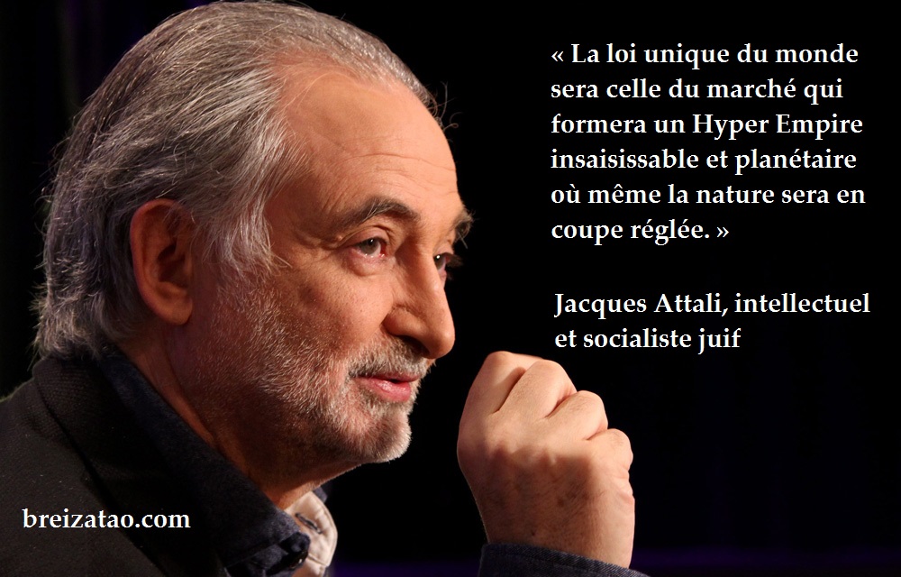 Da dove ha preso l’idea, Macron? Ma da Jacques Attali, suo padrino, mentore e creatore! Attali ebreo a tempo pieno, il consigliere intimo di tutti i presidenti socialisti, l’economista mondialista, il futurologo principe. Qui, in un video composto di spezzoni di varie interviste del potentissimo suggeritore dei presidenti, si sente Attali dire al minuto 3:14, come un dato di fatto: