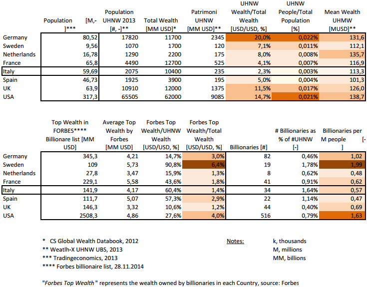E non solo: gli ultraricchi tedeschi, che prelevano più di tutti al loro paese, sono pochissimi rispetto alla popolazione, e “ciò significa che le elites tedesche sono proporzionalmente poche, unite e potentissime”. Superati in questo solo dalla Svezia –il paese che noi crediamo massimamente egualitario, poveri ingenui.